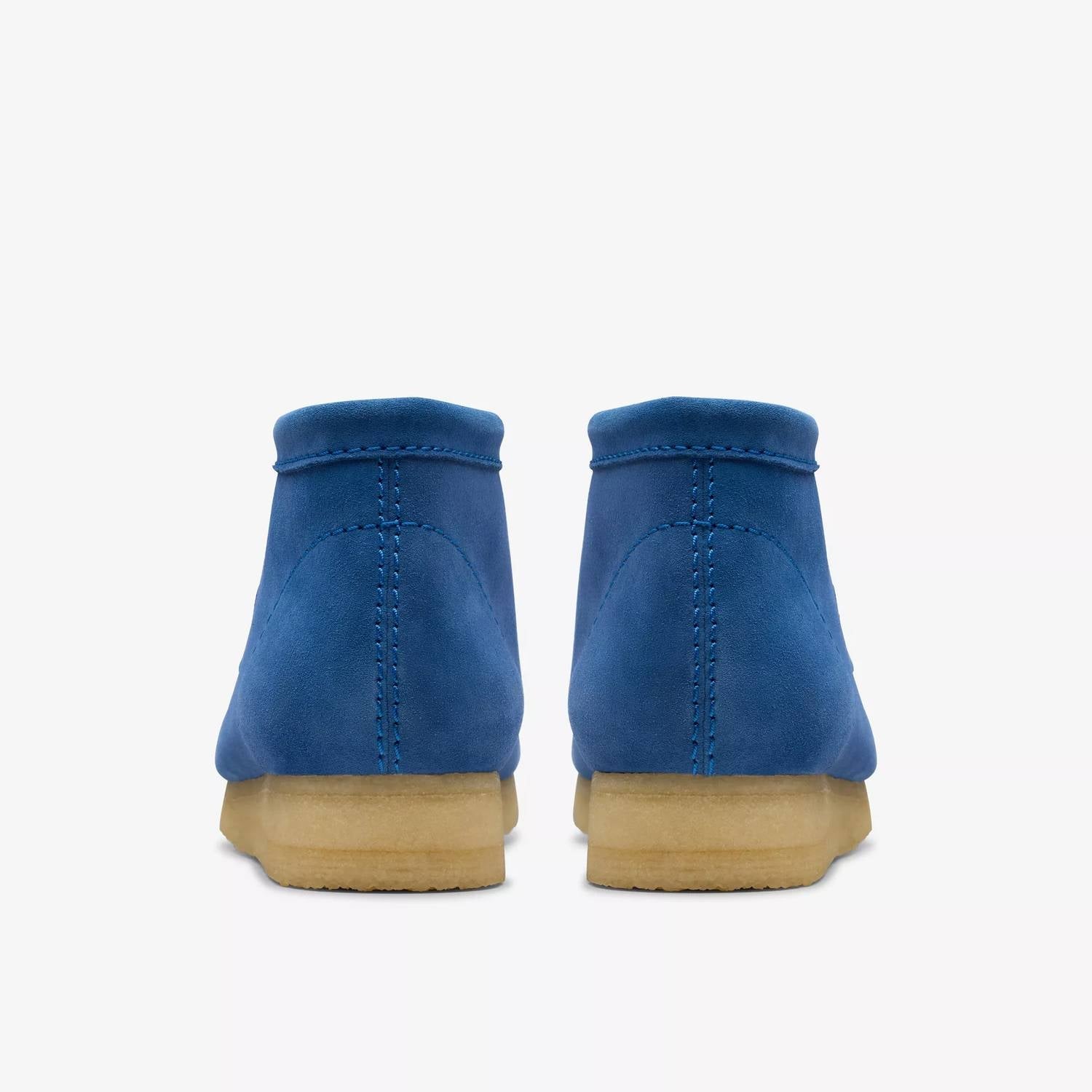 Step into style. Feature a premium blue suede upper and a breathable leather lining, ensuring comfort and quality. With a low platform heel. Maintain their classic round toe shape and are firmly anchored by a natural rubber pebble crepe sole. Enjoy the added details of tonal fobs, channeling Clarks Originals and Wallabee heritage.