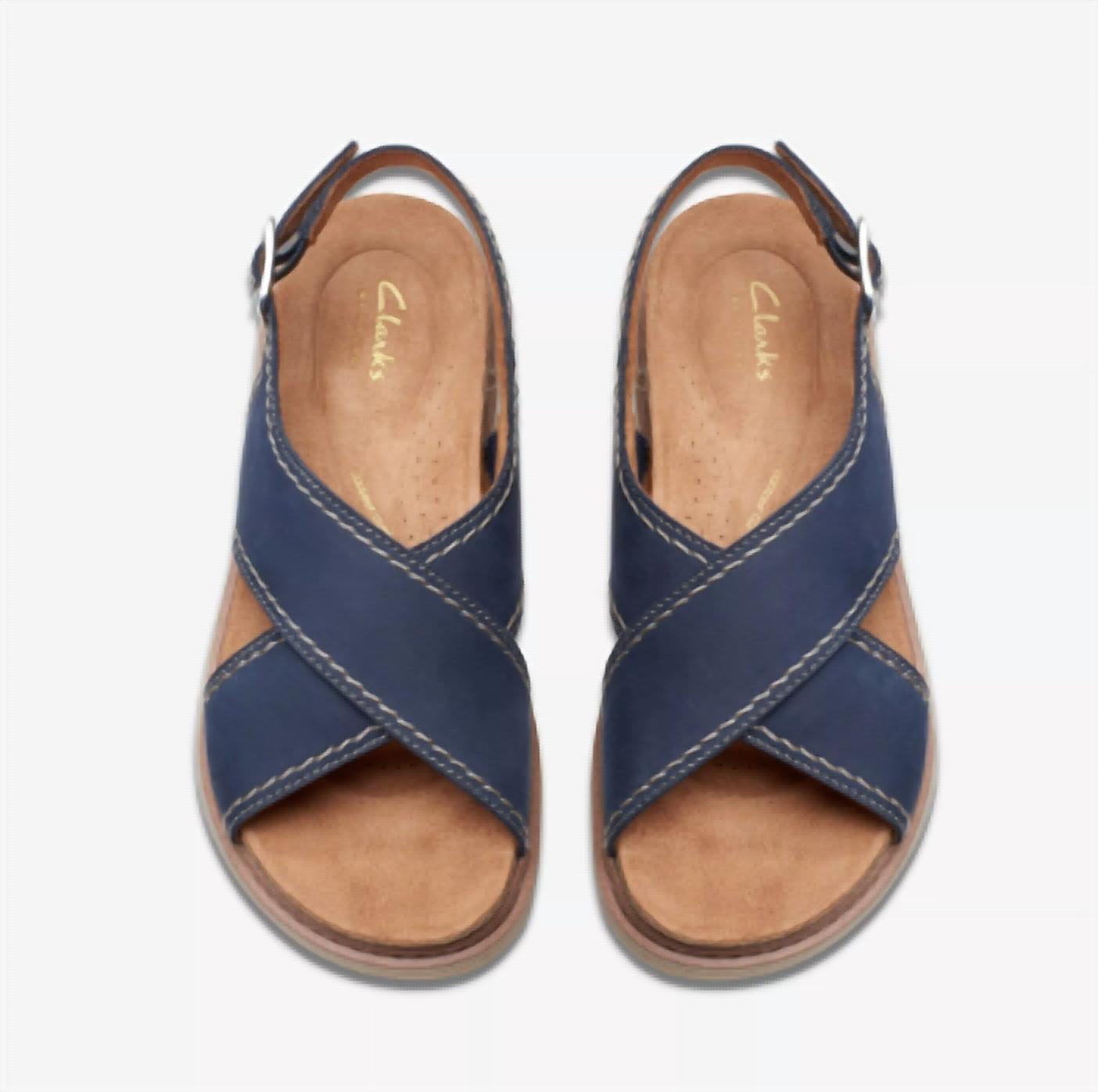 This sandal will take you from brunch to dinner and everything in between. Premium navy nubuck uppers. Adjustable buckle side strap for a secure, comfort fit. Contour cushion footbed provides lasting comfort. Contour cushion footbed provides lasting comfort. Flexible, layered TPR (thermoplastic rubber) sole provides ultimate grip. Heel height: 35mm.