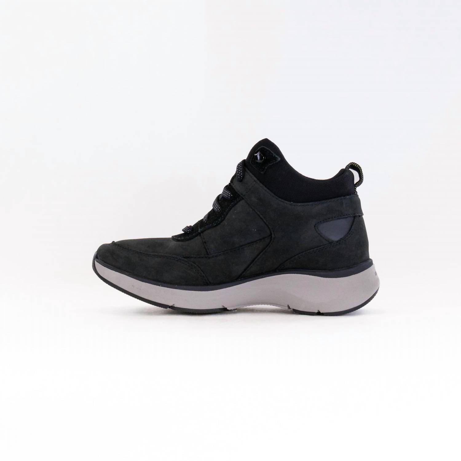 Step confidently in the Women's Wave 2.0 Mid Waterproof Ankle Boots by Clarks, perfect for travel and fall adventures. Crafted from a premium mix of leather and textile, these boots feature a lace fastening for a secure fit and a lightly cushioned footbed for all-day comfort. A low flat heel with a round toe structure complements the WaveWalk soles, designed to naturally propel your stride. Waterproof and breathable C-Shell technology ensures your feet stay dry, making them ideal for Thanksgiving and embracing 90s fashion trends.