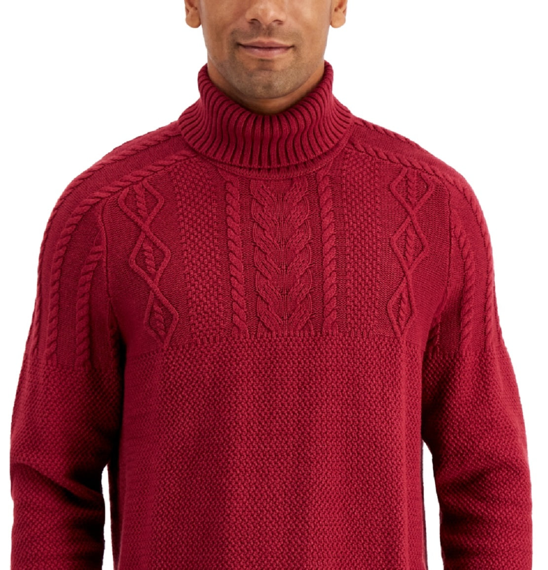 Club Room Men's Chunky Cable Knit Turtleneck Sweater Red Size XX-Large