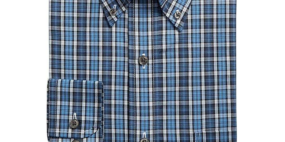 Club Room Men's Dress Shirt Plaid Performance Tartan Navy Size 15.5x32-33