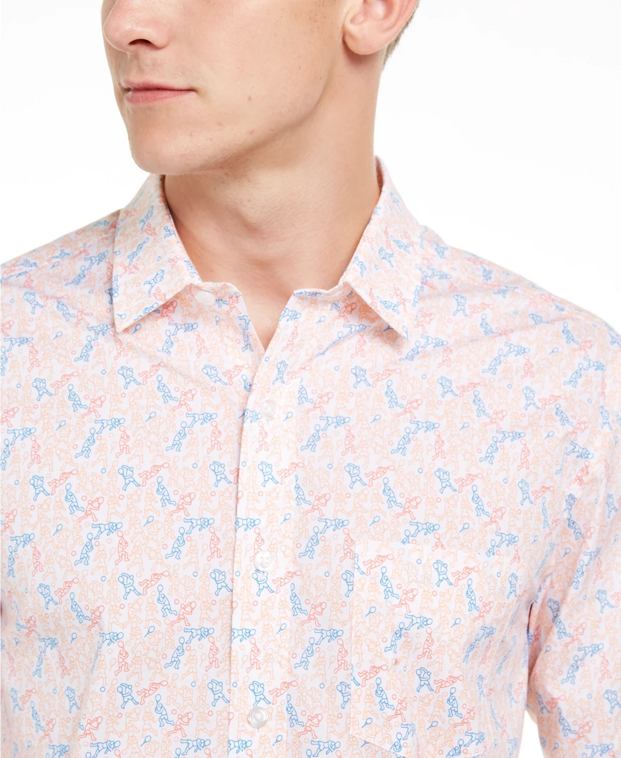 Club Room Men's Tennis Player Print Shirt White Size Small