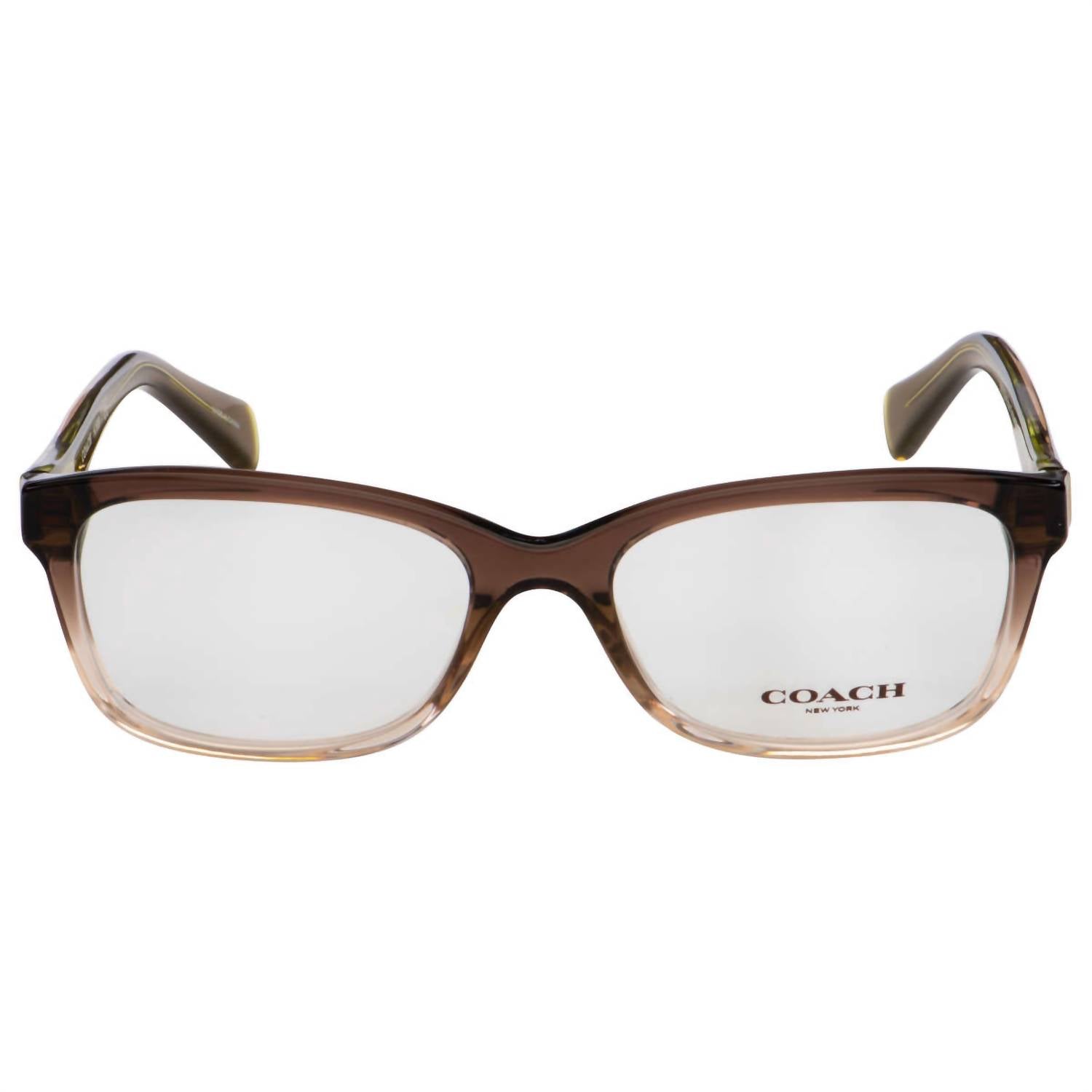 Blending fashion and practicality, these stylish shades are chic and mandatory. Stand out from the crowd and safeguard your vision with these stand-out sunglasses. Experience the timeless elegance of the Women's HC6089 Eyeglasses by Coach, designed with a chic rectangular frame. Crafted from durable plastic, these eyeglasses feature a sophisticated olive brown gradient finish. The lenses measure 51 mm in width, complemented by a 16 mm bridge and 135 mm arms, ensuring a comfortable fit. Perfect for a refined look, they seamlessly blend style with practicality.