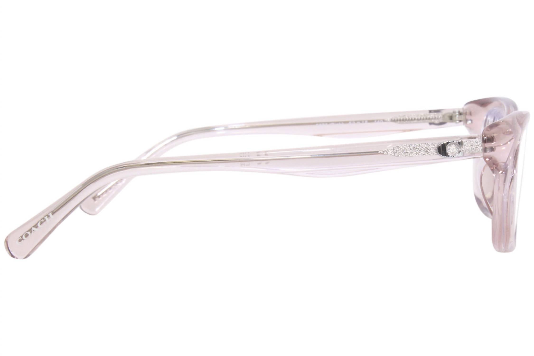 Blending fashion and practicality, these stylish shades are chic and mandatory. Stand out from the crowd and safeguard your vision with these stand-out sunglasses. Discover the Women's HC6164 Eyeglasses by Coach, designed in a chic transparent pink for a standout look. The full rim, cat eye frame shape is crafted from durable plastic, ideal for oval and triangle face shapes. Key dimensions include a lens width of 53 mm, an arm length of 140 mm, and a bridge width of 18 mm, perfect for a comfortable fit. The lenses are clear and customizable, allowing for personalized vision correction.