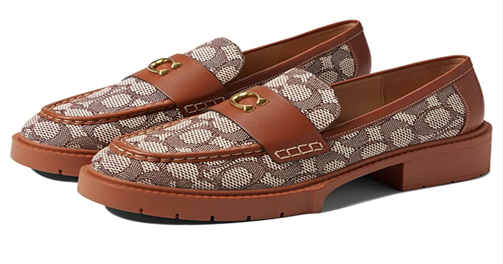 COACH Leah Textured Jacquard Loafer Cocoa/Burnished Amber 7 B (M)
