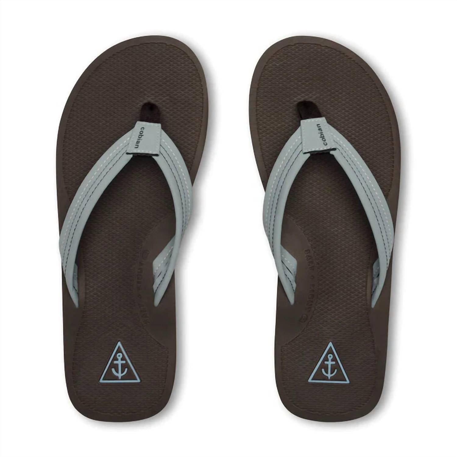 Step into summer with the Cobian Men's Anchor Sandal, a perfect choice for beach days and boating adventures. Featuring an open-toe design and flat heel, these blue sandals blend style and functionality. The water-friendly synthetic leather strap is accentuated with contrast stitching, while a diamond-patterned EVA footbed ensures grip and comfort. Equipped with a Cobian AquaTread non-marking rubber outsole, these sandals offer robust traction on wet surfaces.