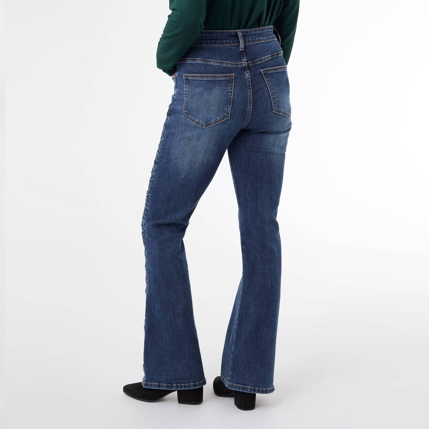 Pair these wide leg jeans with mules, slides or your favorite strappy sandals. Experience ultimate comfort and style with the EverStretch Flare Jeans by COCO + CARMEN, crafted for women in a dark denim shade. These mid-rise pants feature a flared leg and a 30-inch inseam, embodying the Y2K trend. The jeans are made from a unique cotton blend with a comfort fit and solid pattern, equipped with both front and back pockets, belt loops, a working zipper, and a button closure for practicality. Ideal for any music festival or casual summer outing, these jeans promise exceptional stretch and softness with every wear.