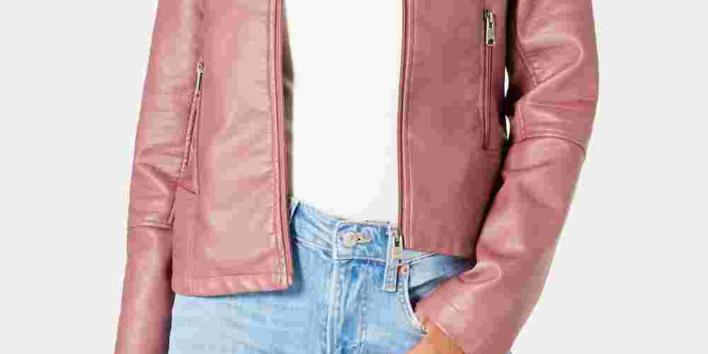Coffee Shop Women's Faux Fur Collar Faux Leather Jacket Pink Size X-Small