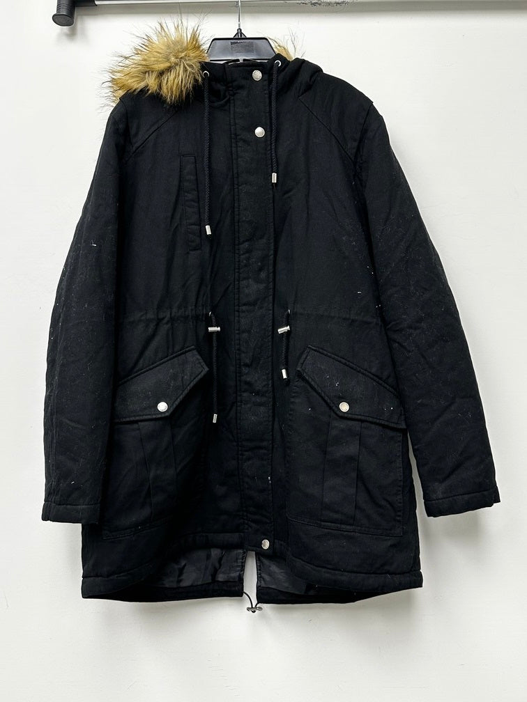 Collection B Women's Junior's Faux Fur Trim Hooded Anorak Coat Black Size X-Large