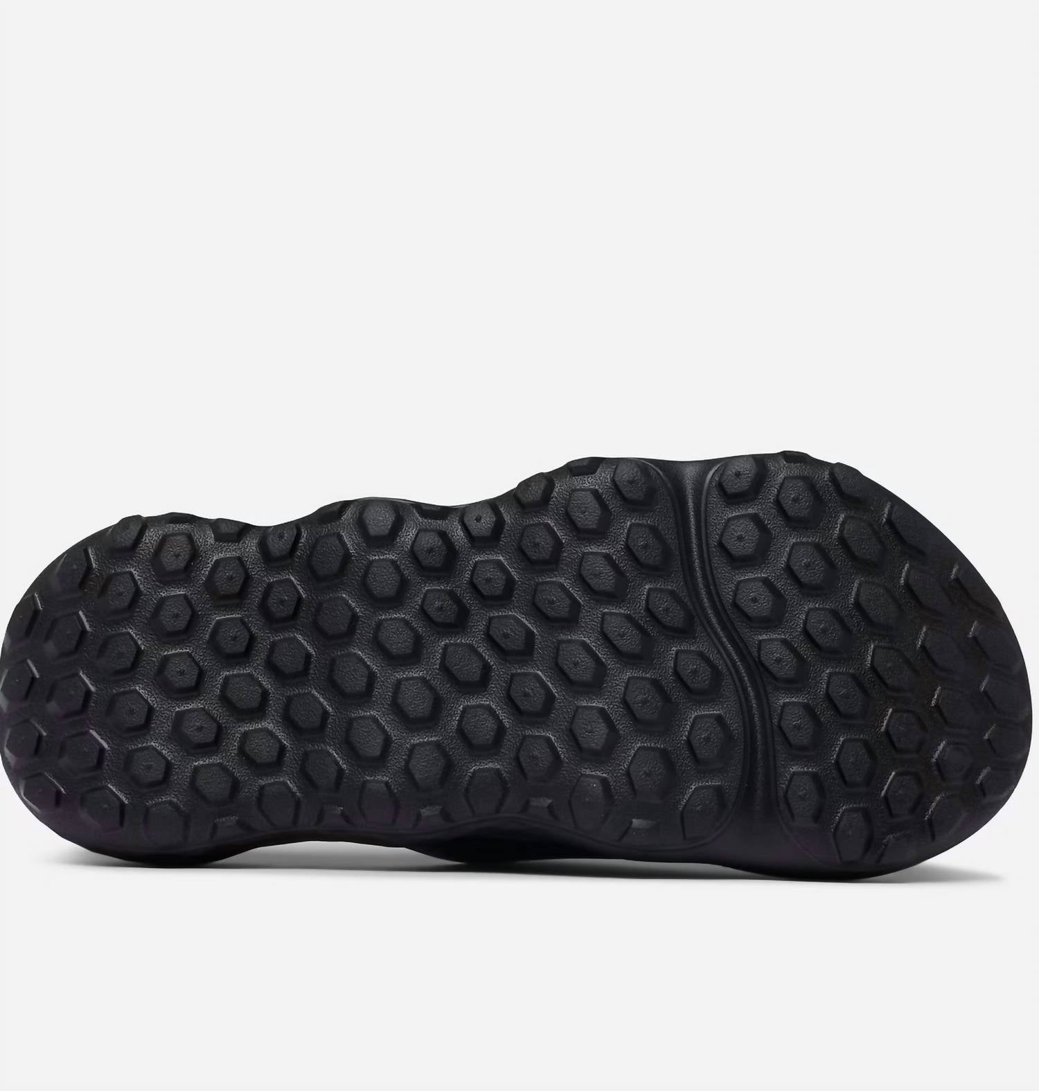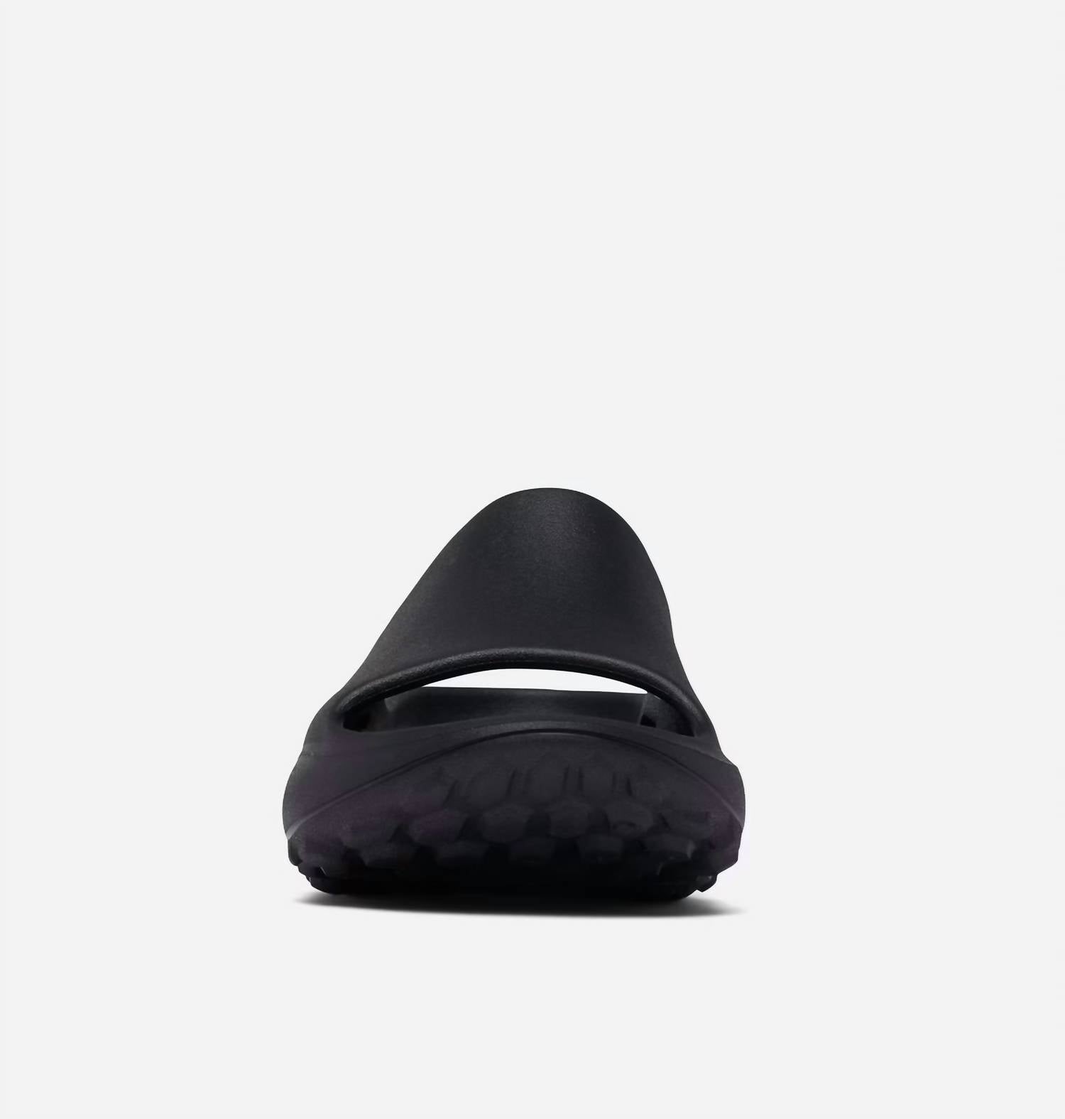 This sandal will take you from brunch to dinner and everything in between. Experience the comfort and style of the Women's Thrive Revive Slide Sandals by Columbia, perfect for every step you take. Featuring a single strap with breathable windows, these slides provide a fresh and comfortable feel with an open toe design. The Omni-Grip™ LT outsole ensures durable traction with ultra-light ground-contact foam, and the Adapt Trax™ outsole offers outstanding grip in both wet and dry conditions. Slide into these slip-on sandals adorned with the signature Columbia logo and enjoy the textured hex footbed that enhances breathability and underfoot comfort.