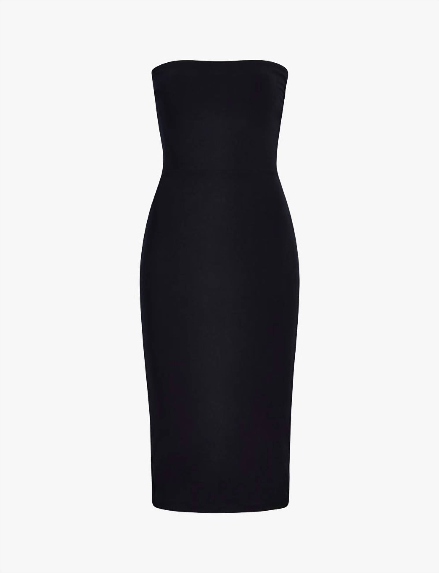 A midi dress so versatile, your options for wearing it are endless. Indulge in the luxurious feel of the Butter Luxe Strapless Midi Dress by Commando, crafted in a sleek sheath silhouette. This black dress boasts a premium Austrian modal blend, composed of 90% micromodal and 10% elastane, with a lining of 79% micromodal and 21% elastane. Experience ultra-soft comfort with four-way stretch and high recovery, all in a breathable, pilling-resistant design complete with a back slit. Care is a breeze with machine washable convenience.