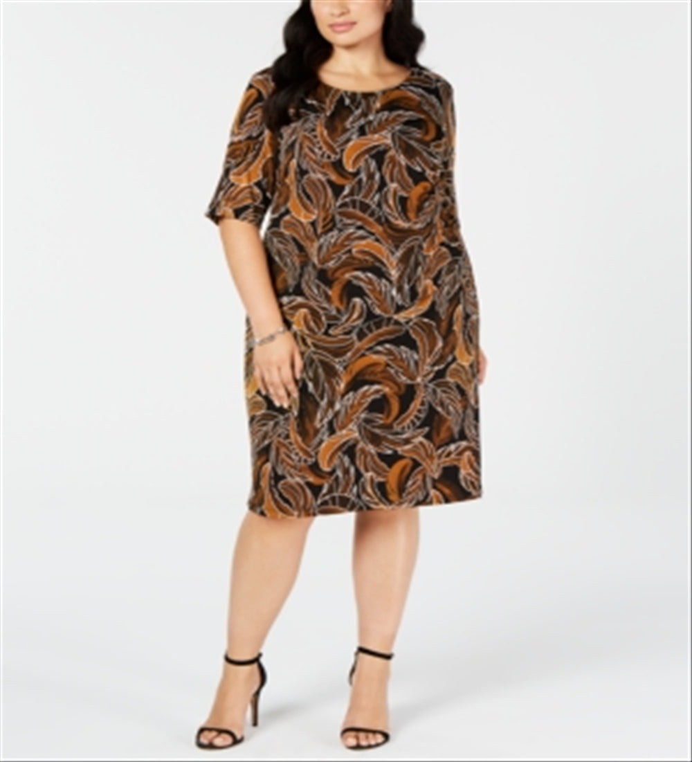 Connected Trendy Plus Leaf-Print Sheath Dress Brown Size 14W