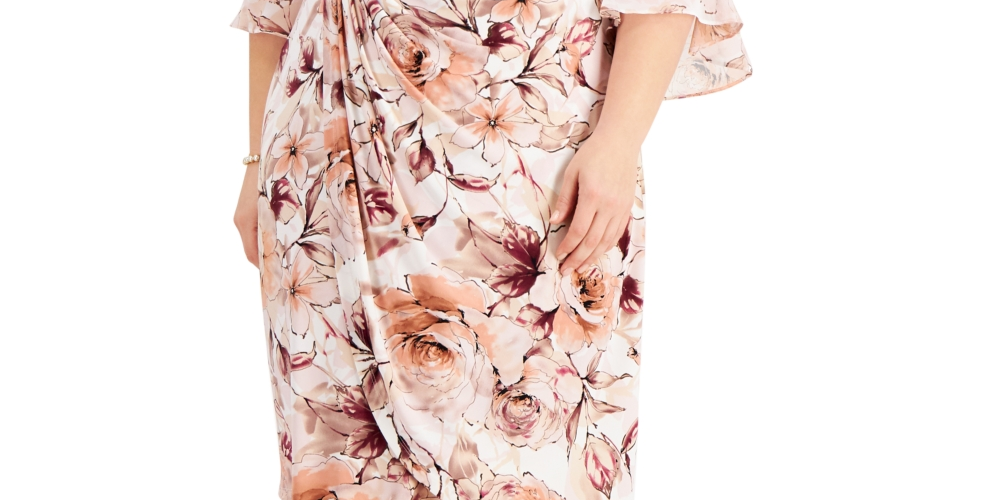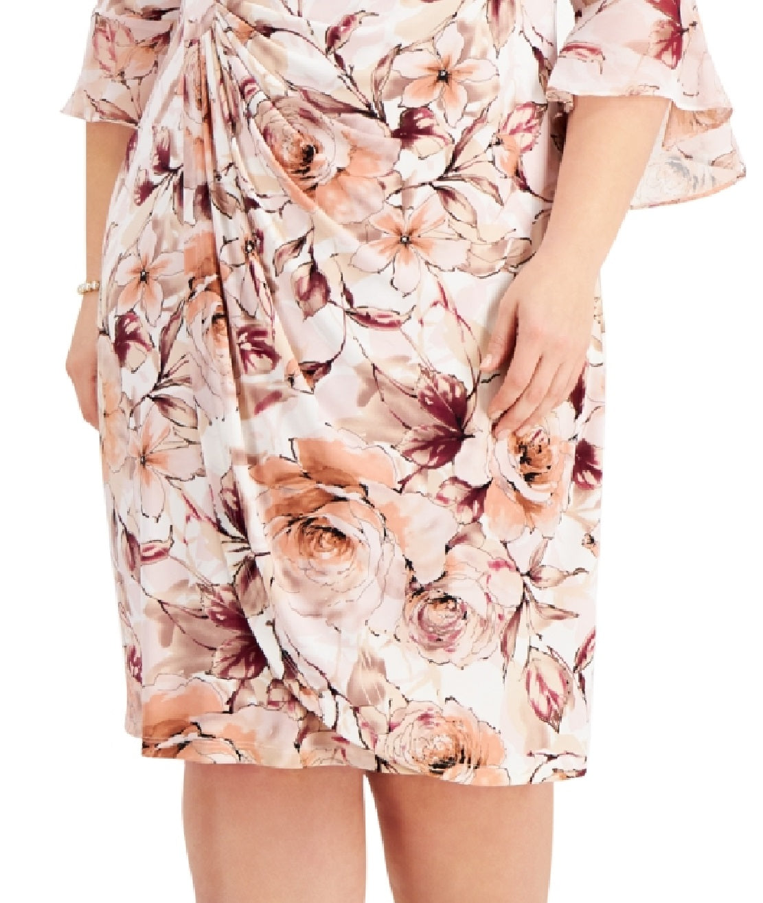 Connected Women's Gathered Waist 3/4 Sleeve Sheath Dress Brown Size 16W