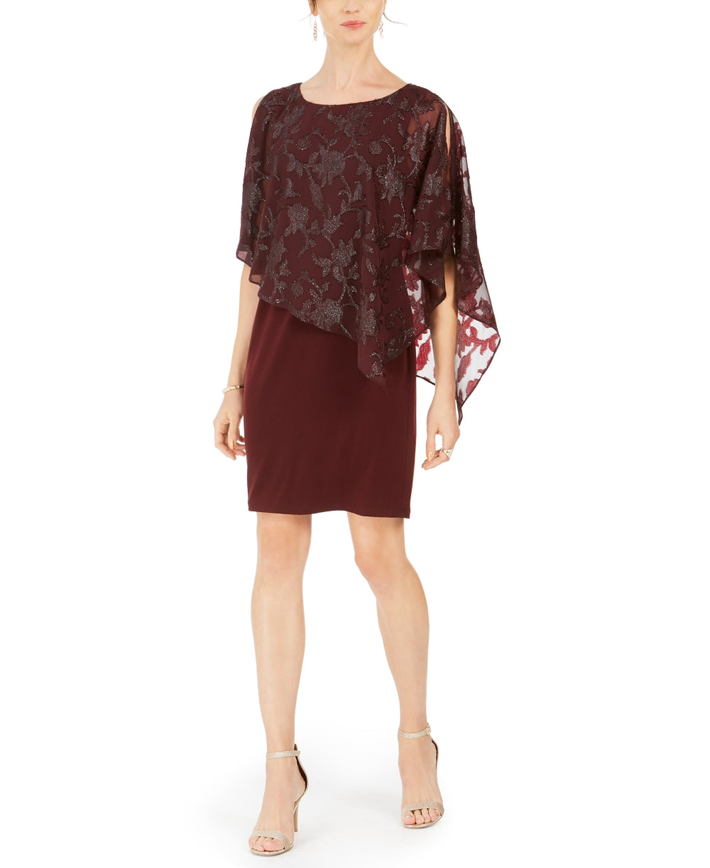 Connected Women's Metallic-Capelet Sheath Dress Brown Size 16