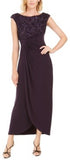 Connected Women's Soutache Faux-Wrap Gown Dark Purple Size 10 Petite