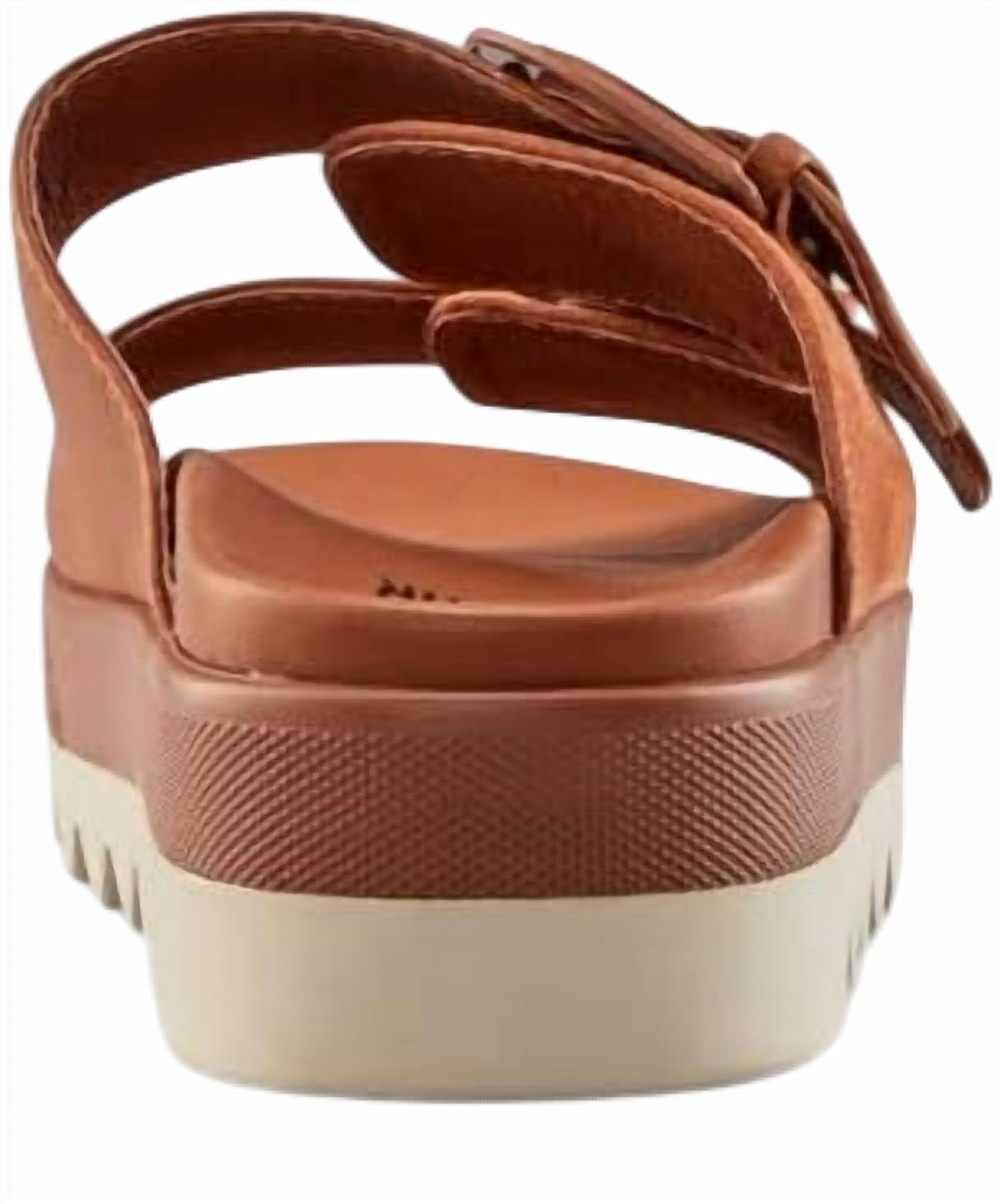Features a pigskin lining with EVA cushion outsole. Water repellent. Stain resistant. Straps with buckle closure.