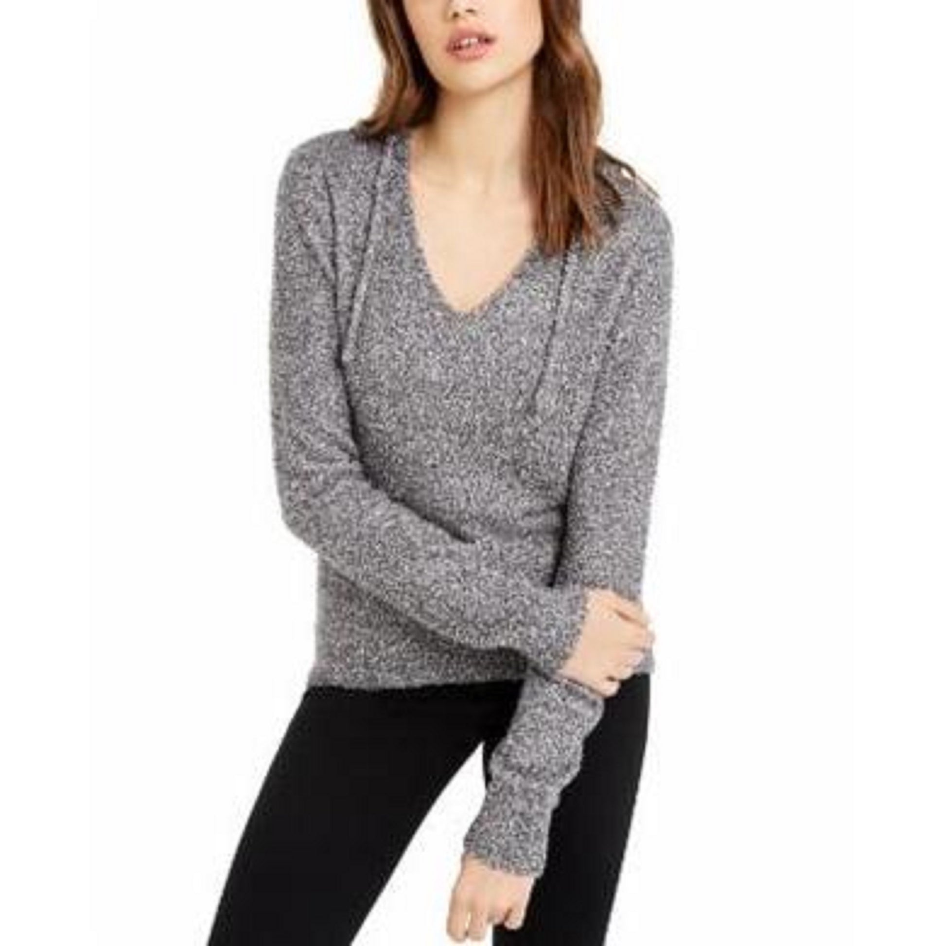 Crave Fame Juniors' Marled Fuzzy Pullover Hoodie Brown Size Large