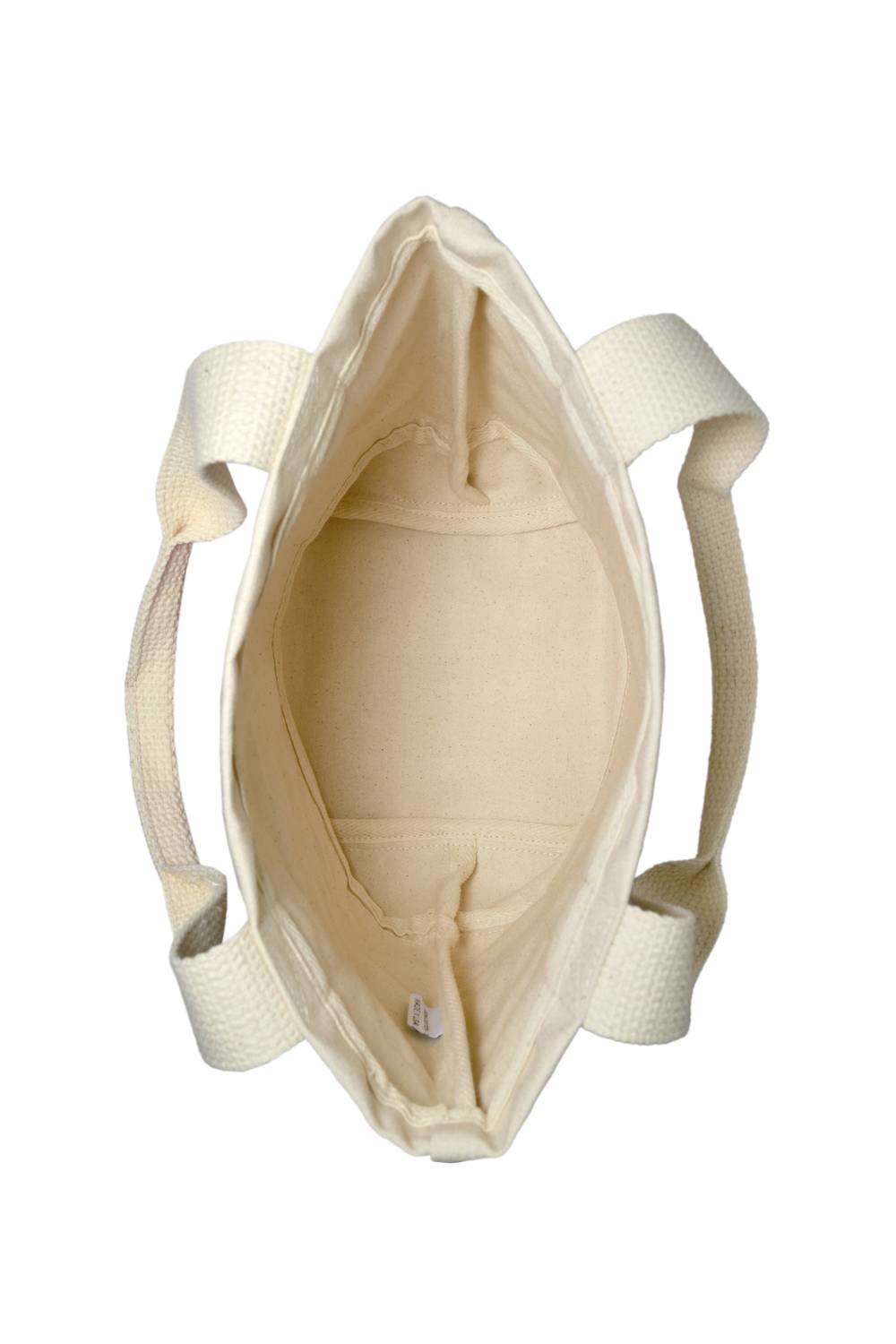 Crafted from durable 15 oz cotton canvas, this compact tote is hand-painted and screenprinted with a leaf pattern. Sized at approximately 12.5" long, 11" high, and 6" deep, it features a handy small exterior pocket and bound interior seams to prevent fraying. Handmade in the USA by a disability-founded, woman-owned brand, it's machine washable and eco-friendly, making it as socially conscious as it is stylish.