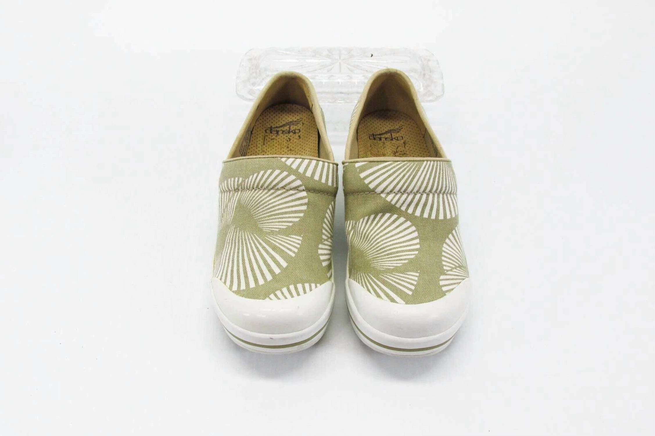 Introducing the Dansko Women's Volley Vegan Clog in a chic Chino Palm shade, a sustainable choice with flair. Crafted from vegan materials, this clog features a comfortable low block heel measuring approximately 1.5 inches, with a round toe design that ensures roomy wear. Enjoy a slip-resistant sole, complemented by an insole length of approximately 9-1/4 inches, an outside length of approximately 10-1/8 inches, and a width of approximately 3-1/2 inches, delivering the perfect fit for everyday elegance.