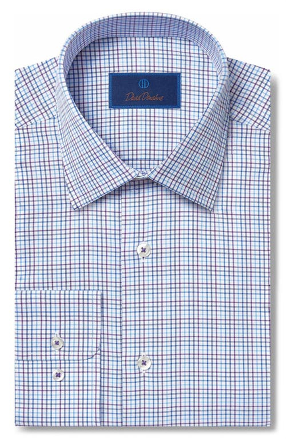 Regular fit for comfort | Fine Tattersall Cotton | Fashionable Blue/Purple/White color | Available in size 16-34 | Premium Nordstrom product | Durable dress shirt | Classic collar design | Long-sleeve style | Professional appearance | Easy to pair with suits