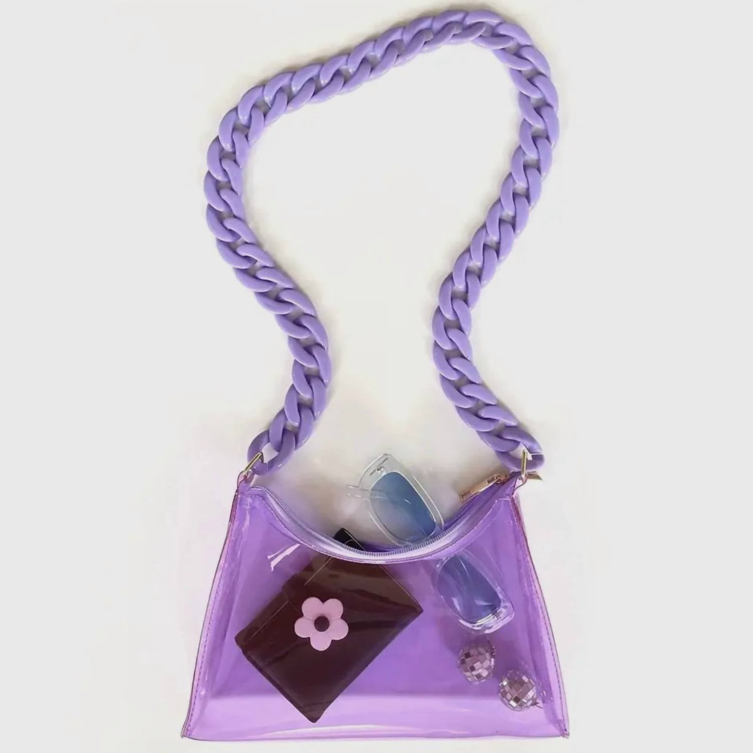 A casual and cute take on everyone's favorite crossbody bag. The Women's Hailey Stadium Bag by Daytrip is your ideal companion for gameday and concerts with its stadium-approved design. Constructed from durable polyurethane in a chic lilac shade, this crossbody bag features a removable 36-inch chain for versatile wear and a secure zip closure. The bag measures 10 x 6 x 2 inches, and it's crafted in the United States, weighing only 9 ounces.