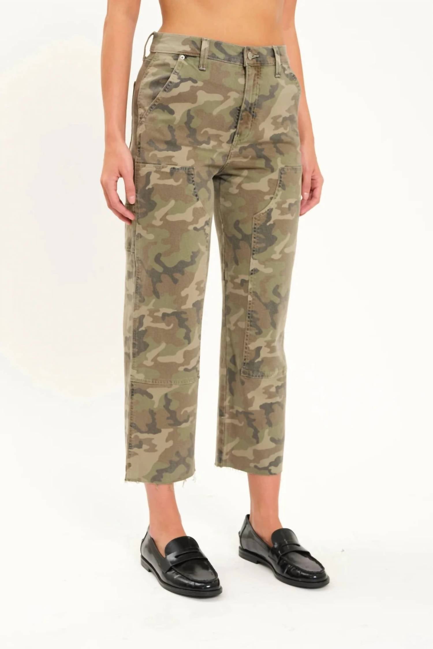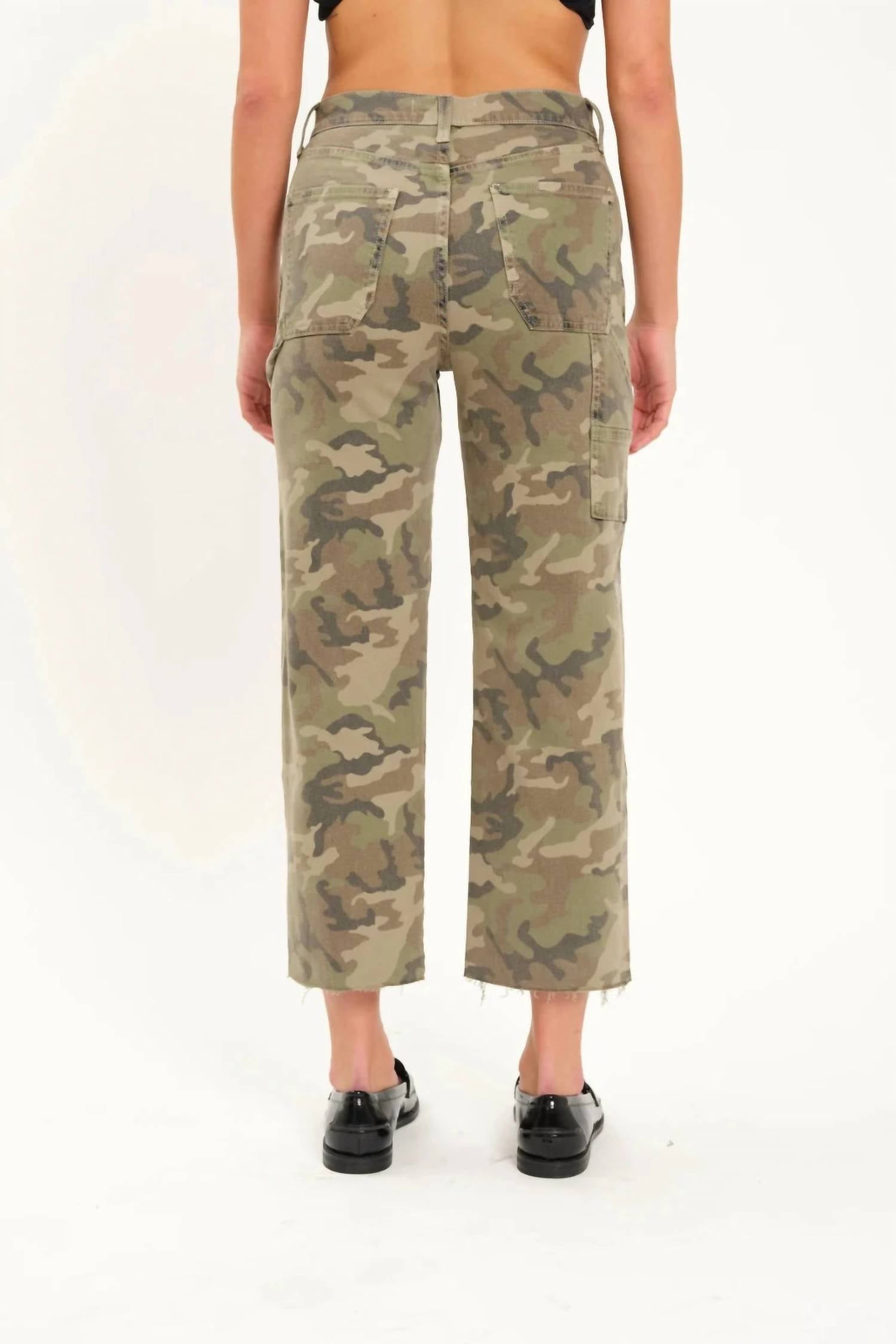This classic straight leg jean has a perfect fit and goes with just about everything. Elevate your casual style with the Sundaze High Rise Straight Crop Jeans by DAZE in bold Camouflage. These jeans boast a high-rise 11.5" and a 26.5" inseam with a relaxed cropped straight leg, complete with a hammer loop and utility pockets for added flair. Crafted from 61.6% Cotton, 37.3% Organic Cotton, and 1.1% Spandex, they offer a comfortable classic fit with a button closure. For a closer fit, consider sizing down.