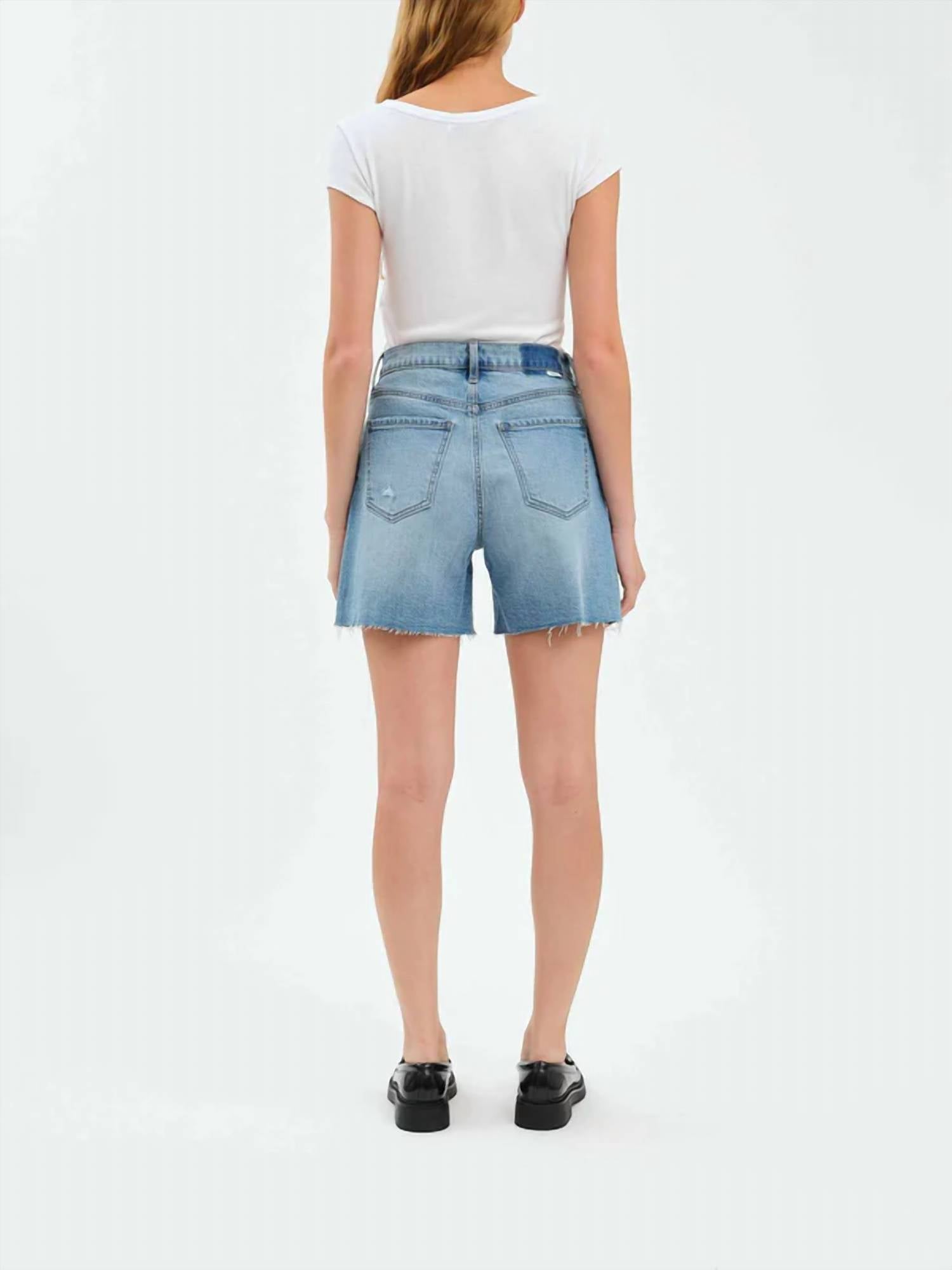 Not only cute but extremely comfortable. The jean shorts you will be reaching for all season long. Experience ultimate summer comfort, crafted in a high-rise style for a flattering fit. Jean shorts in Marina Distressed offer a trendy streetwear vibe with a solid pattern and practical pockets. Button closure. Machine wash and tumble dry.