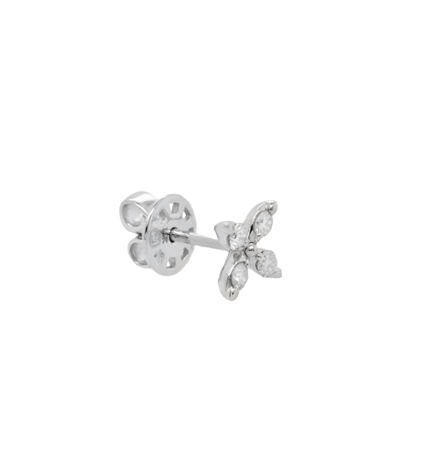 Elevate your elegance with Diana M Jewels' 0.34 Cts Diamond Flower Stud Earrings, crafted in luxurious 14k white gold. These fine earrings feature natural round brilliant diamonds, totaling 0.34 carats, with F-G color and VS-SI clarity, beautifully set in a prong setting. Clasp type: Post. A perfect April birthstone choice, these studs add a radiant touch to any ensemble. SKU: K0725E01