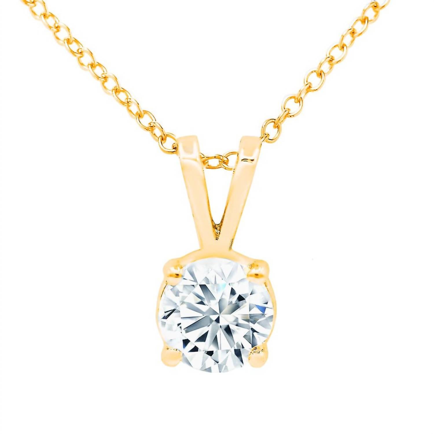 Elevate your elegance with the Diana M Jewels 14kt 1.00 Ct Lab Grown Diamond Solitaire Pendant Necklace, meticulously crafted in fine 14k Yellow Gold. The stunning round brilliant diamond is set in a sophisticated 3-prong setting with a rabbit ear bail, showcasing DEF color and VS clarity in an excellent cut. The pendant is elegantly suspended from a 16" chain, adding timeless charm to your neckline. With its lab-grown origin, the diamond offers a sustainable touch to this exquisite April birthstone piece, perfect for any occasion.