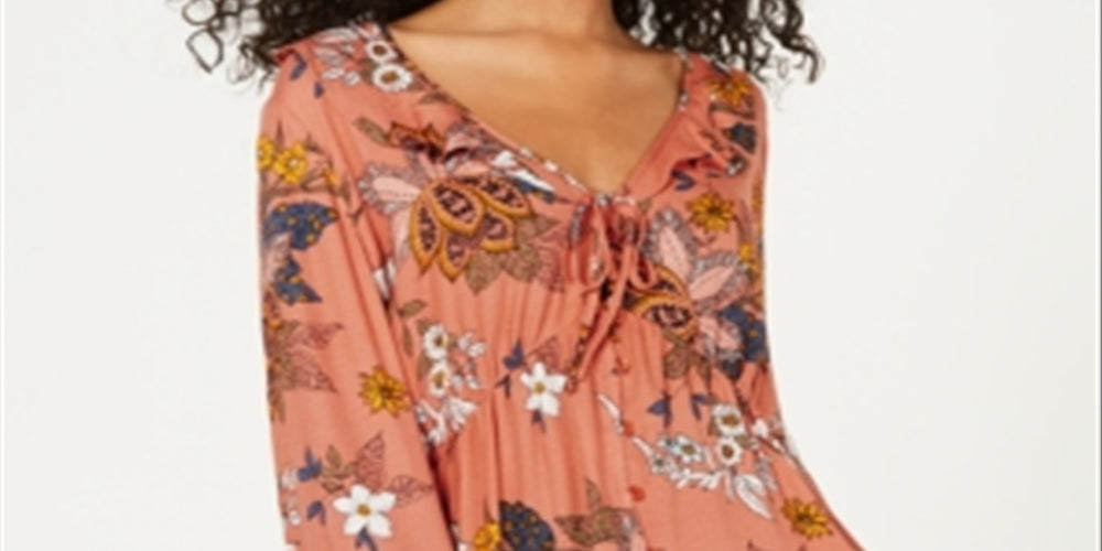 Dickies Women's Floral Print Tie Front Blouse Orange Size S