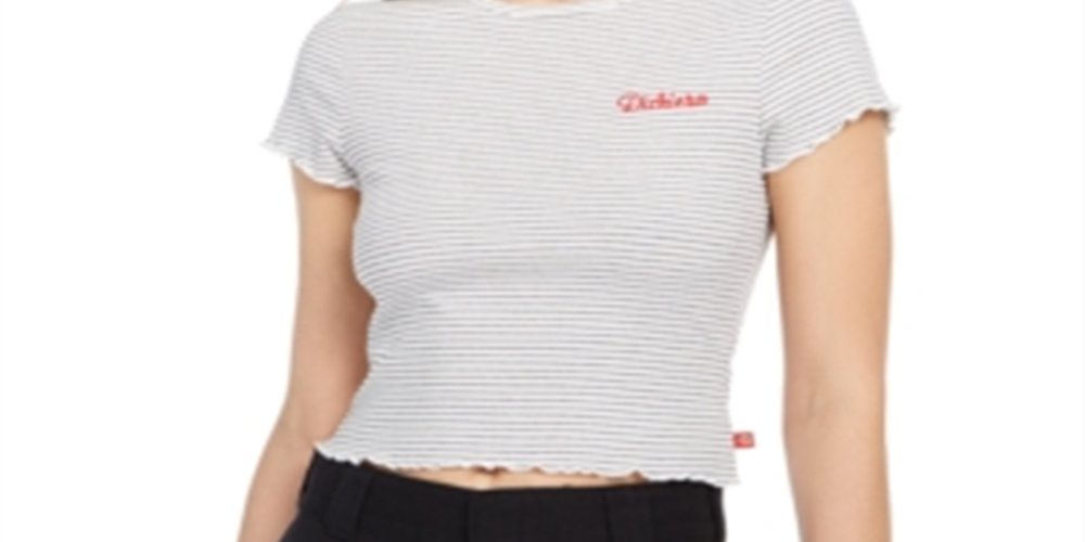 Dickies Women's Striped Baby T-Shirt White Size Small