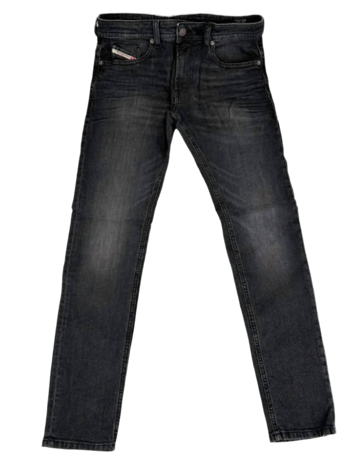 Experience the perfect blend of style and comfort with the Men's Thommer Denim Jeans by DIESEL, presented in a sleek black finish. Crafted from quality denim, these jeans offer a solid pattern with a slim fit and straight leg style, making them versatile for various occasions. Designed with practicality in mind, they feature convenient pockets and a secure button closure. These dark wash jeans are machine washable and ideal for a trendy Y2K look, perfect for concerts or New Year’s Eve celebrations.