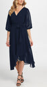 DKNY Women's Balloon Sleeve Faux Wrap Dress Blue Size 14