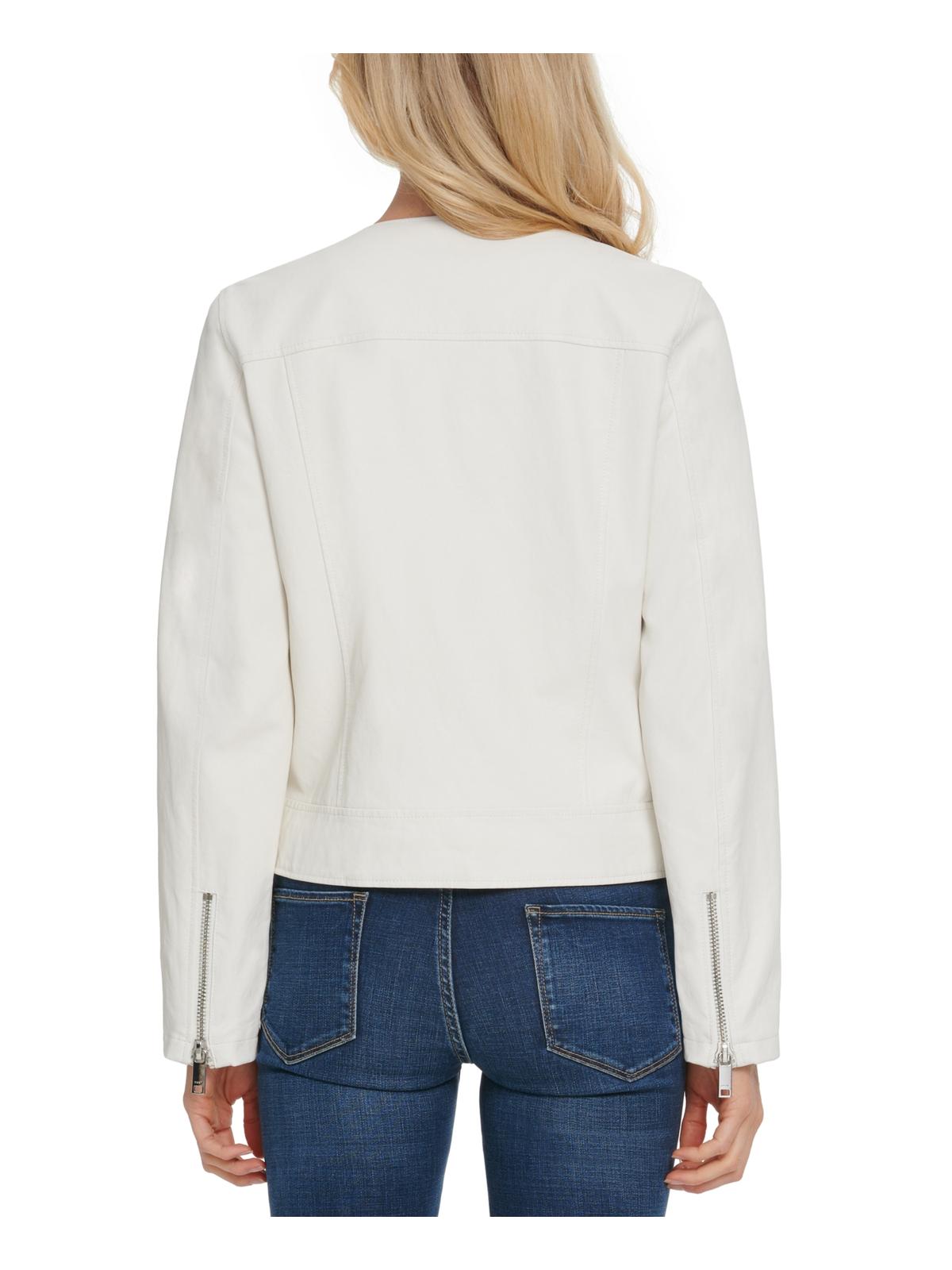DKNY Women's Faux Leather Motorcycle Jacket White Size Medium