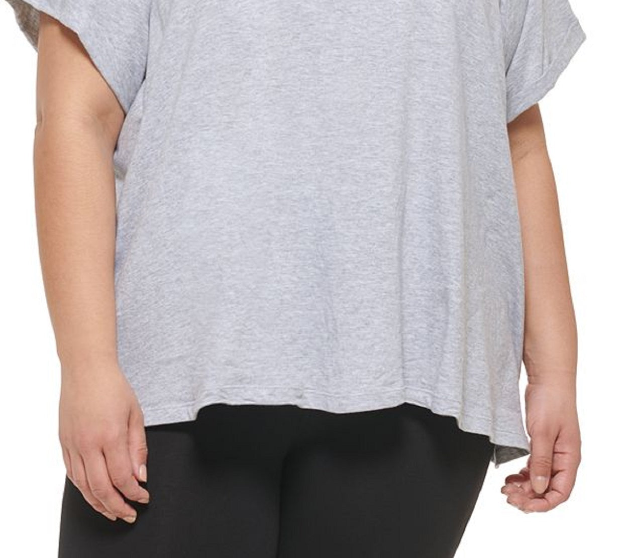 Keep it cute at the gym in this knot-front plus size T-shirt from DKNY.| Crewneck| Logo at chest; knot at front hem| All cotton| Machine washable| Imported