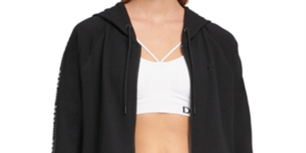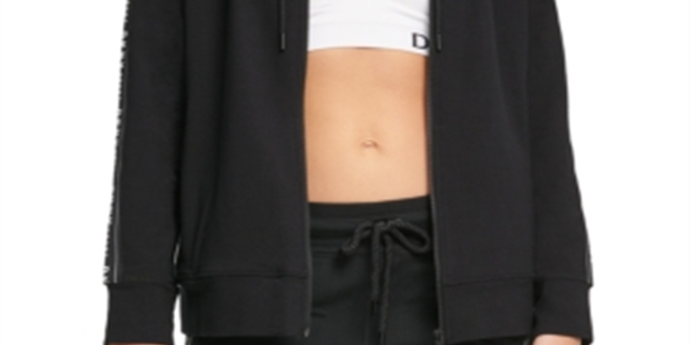 DKNY Women's Logo French Terry Zip Hoodie Black Size Small
