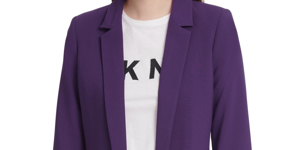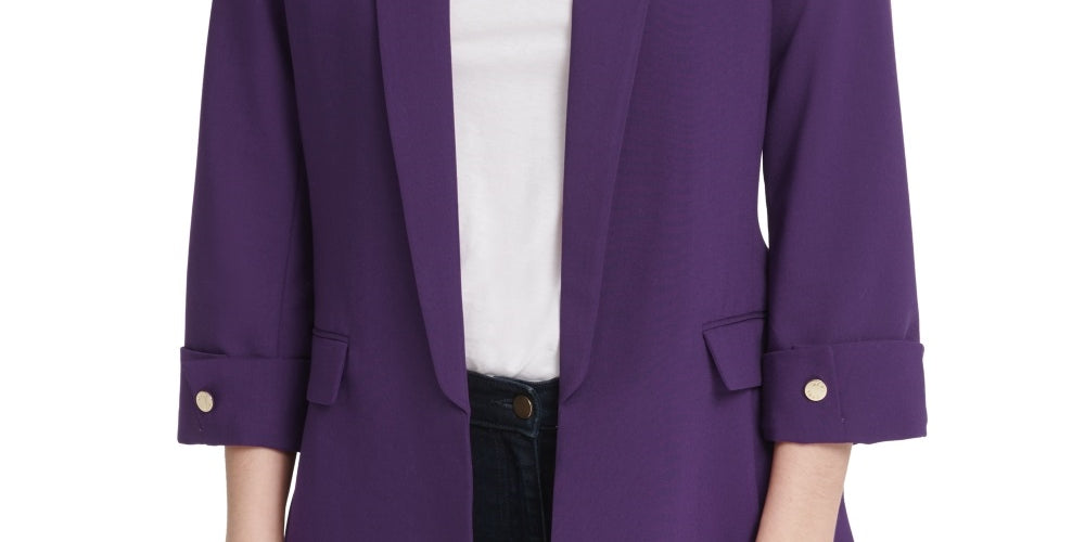 Hits below hip; approx. length: 28"|Notched collar; open front|Shoulder pads|Flap pockets at front hips|3/4-sleeves