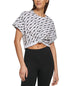 DKNY Women's Outline Logo Print Cropped Boxy T-Shirt White Size Small