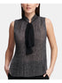 DKNY Women's Printed Pleated Tie Neck Blouse Black Size Petite Medium