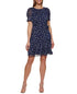 DKNY Women's Printed Puff Sleeve Fit & Flare Dress Blue Size 6