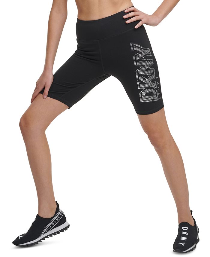 DKNY Women's Rhinestone Logo High Waist Bike Shorts Black Size M