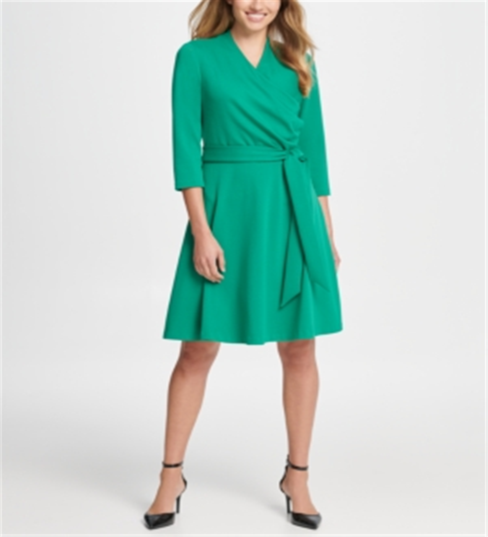DKNY Women's Surplice Ponte Fit & Flare Dress Green Size 12