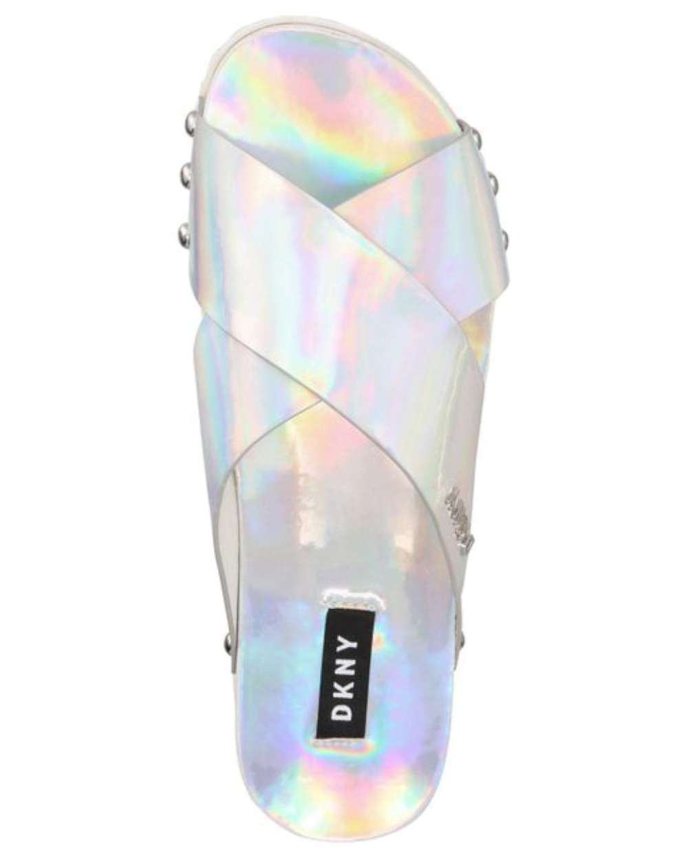 Ask a question about DKNY Women's Wave Open Toe Formal Slide Sandals Gray Size 8