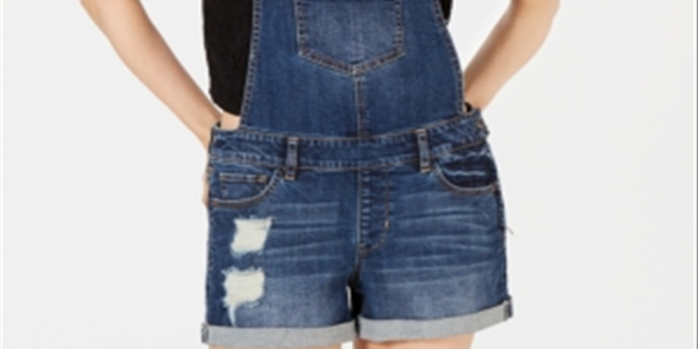 denim takes on a cool new vibe with these 6-pocket shortalls from dollhouse| detailed with cuffed legs and classic adjustable shoulder straps