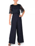 Donna Ricco Women's Lace Overlay Wide Leg Jumpsuit Navy Size 16 Plus