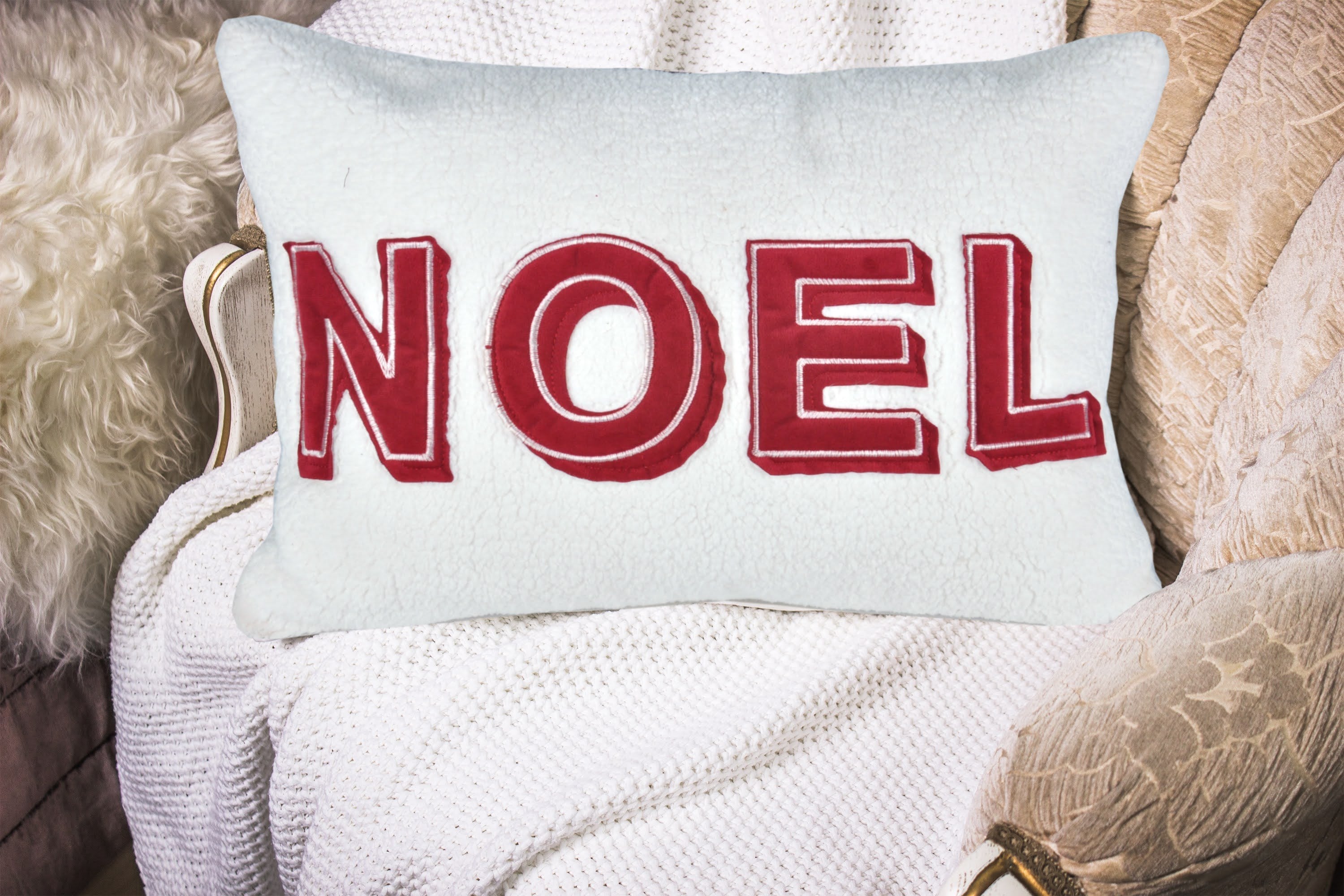 This is the charming holiday accent pillow that blends festive cheer with luxurious comfort. Featuring a bold red “NOEL” appliqué on a soft sherpa-textured front, it evokes the warmth and coziness of a winter evening, adding a welcoming touch to any holiday décor.