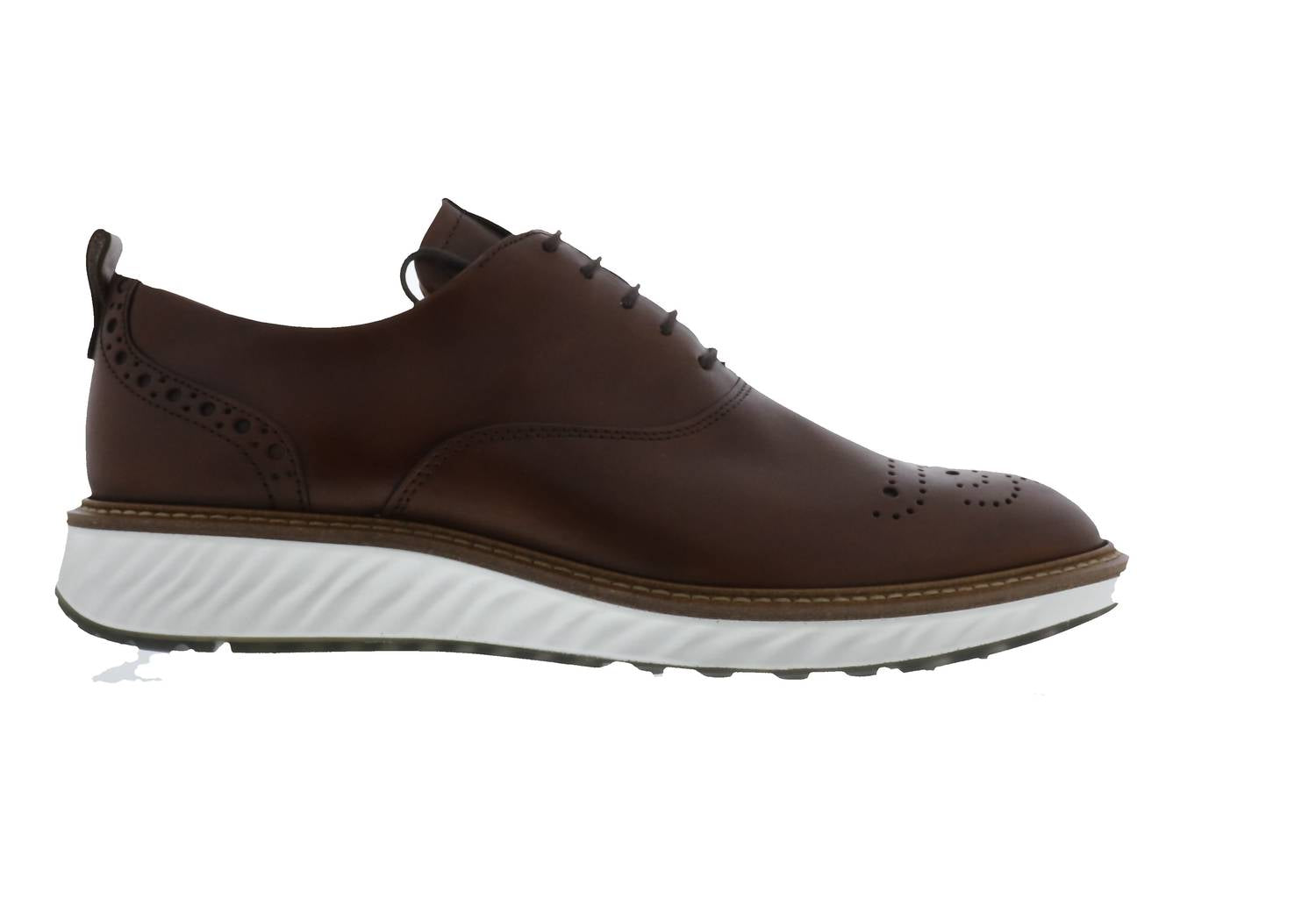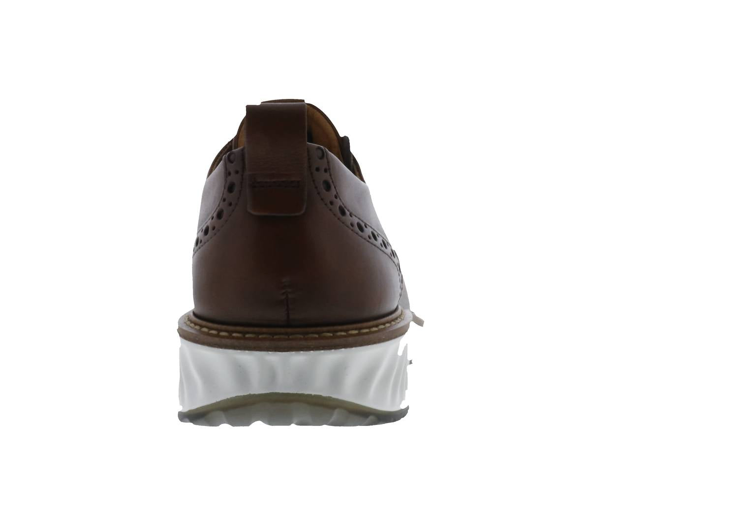Premium, flexible leather. Glove-like fit for comfort. Wingtip detailing adds a stylish touch. Elegant waxed textile laces enhance sophistication. Molded leather insole and combined leather and textile lining offer support and comfort. Unique to a men's smart shoe, a back heel pull tab allows for easy-on movement. ECCO PHORENE midsole provides cushioning and support.