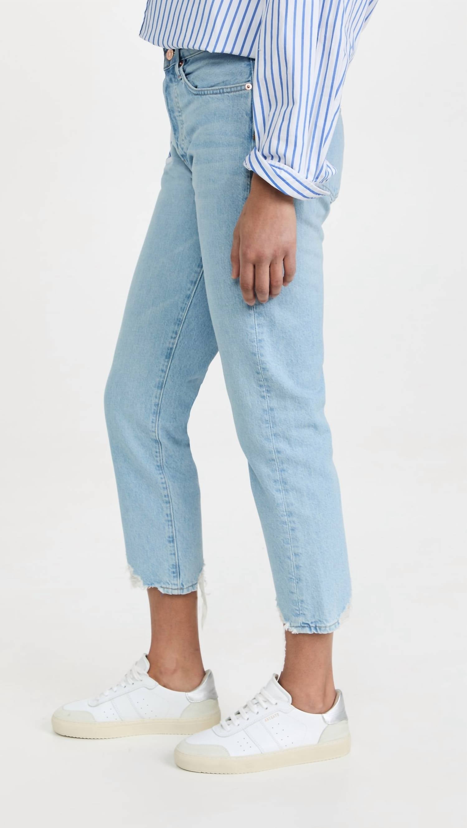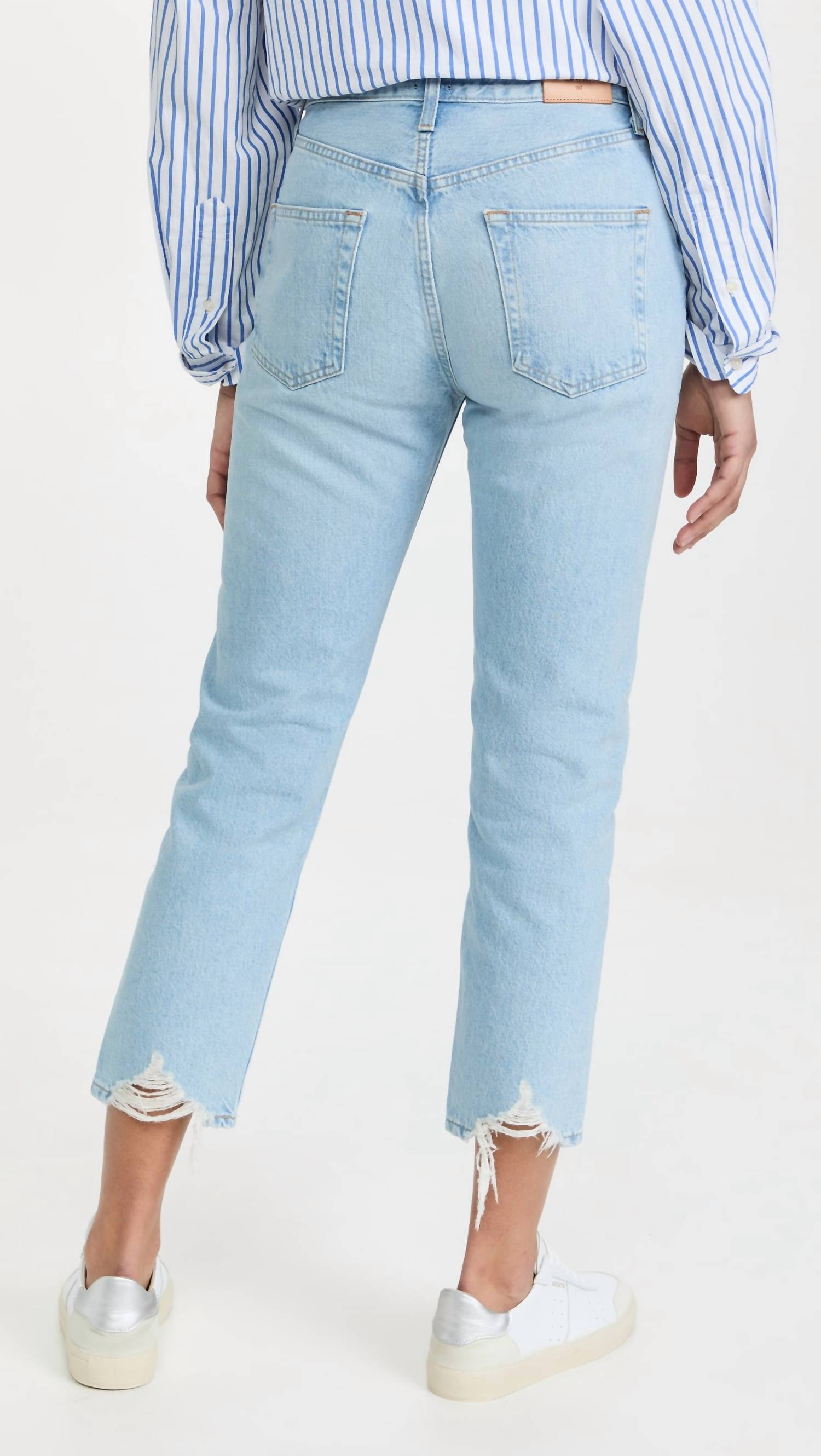 These must-have jeans are fit to perfection. Mid-weight, non-stretch denim. Cropped, straight leg silhouette. Fading and whiskering. Frayed hem. Mid-rise silhouette. Button fly. 5-pocket styling. Shell: 100% Cotton. Wash cold. Made in the USA. Measurements from size 26 - Rise: 10.75in / 27cm. Inseam: 25.5in / 65cm. Leg opening: 12.5in / 32cm.