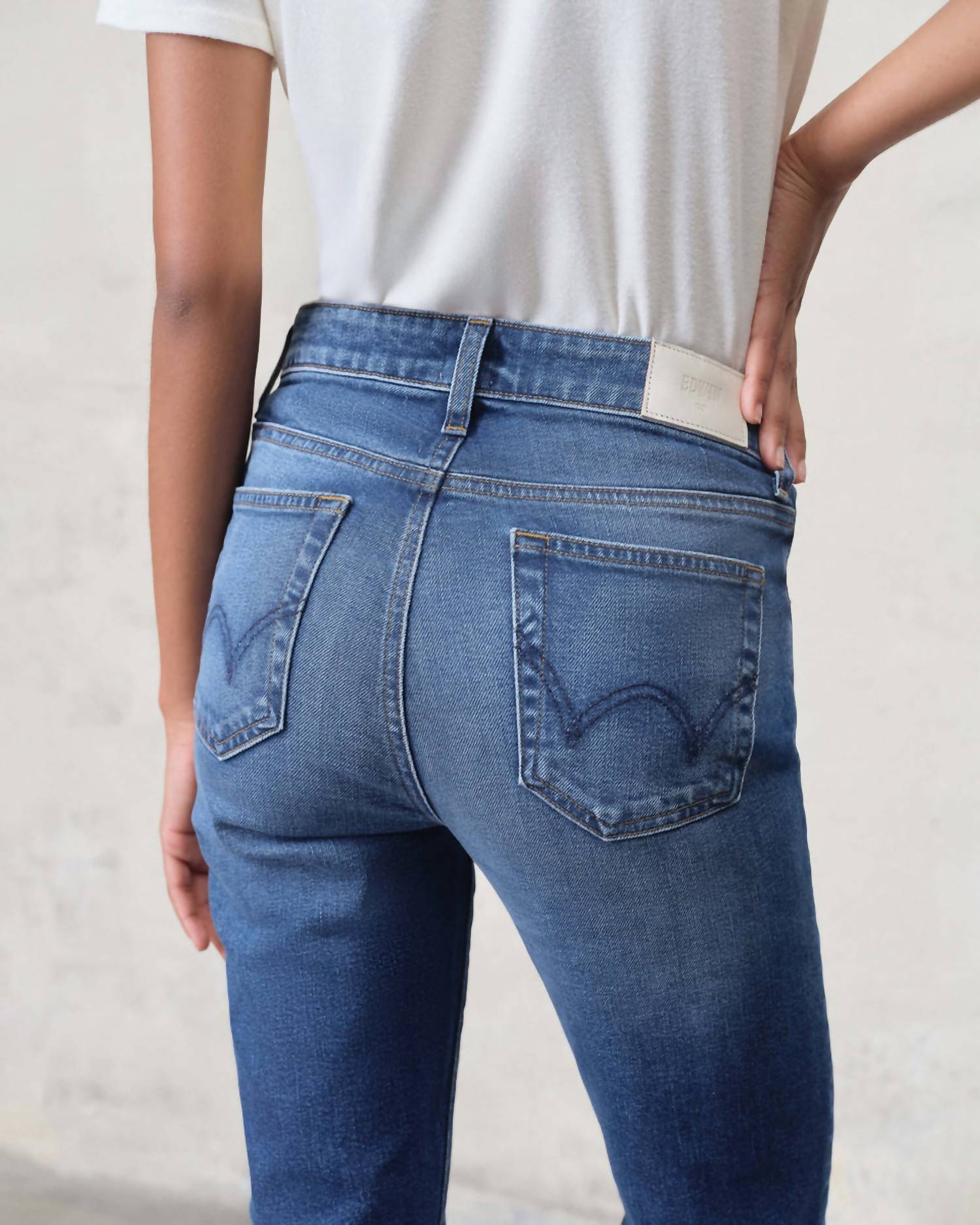Just add boots! Discover the Lark Bootcut Jeans by EDWIN, a standout piece in the alluring Lancelot color, boasting a trendy Y2K vibe. These mid-rise jeans offer a relaxed fit with a snug feel at the hips and thighs, flaring into an elegant bootcut leg. With a front rise of 9.25 inches, leg opening of 19.5 inches, and an inseam of 33 inches, they promise comfort and style. Made from a cotton blend with button closure, these jeans are easy to care for with machine wash instructions, perfect for any summer occasion like Independence Day or back-to-school season.