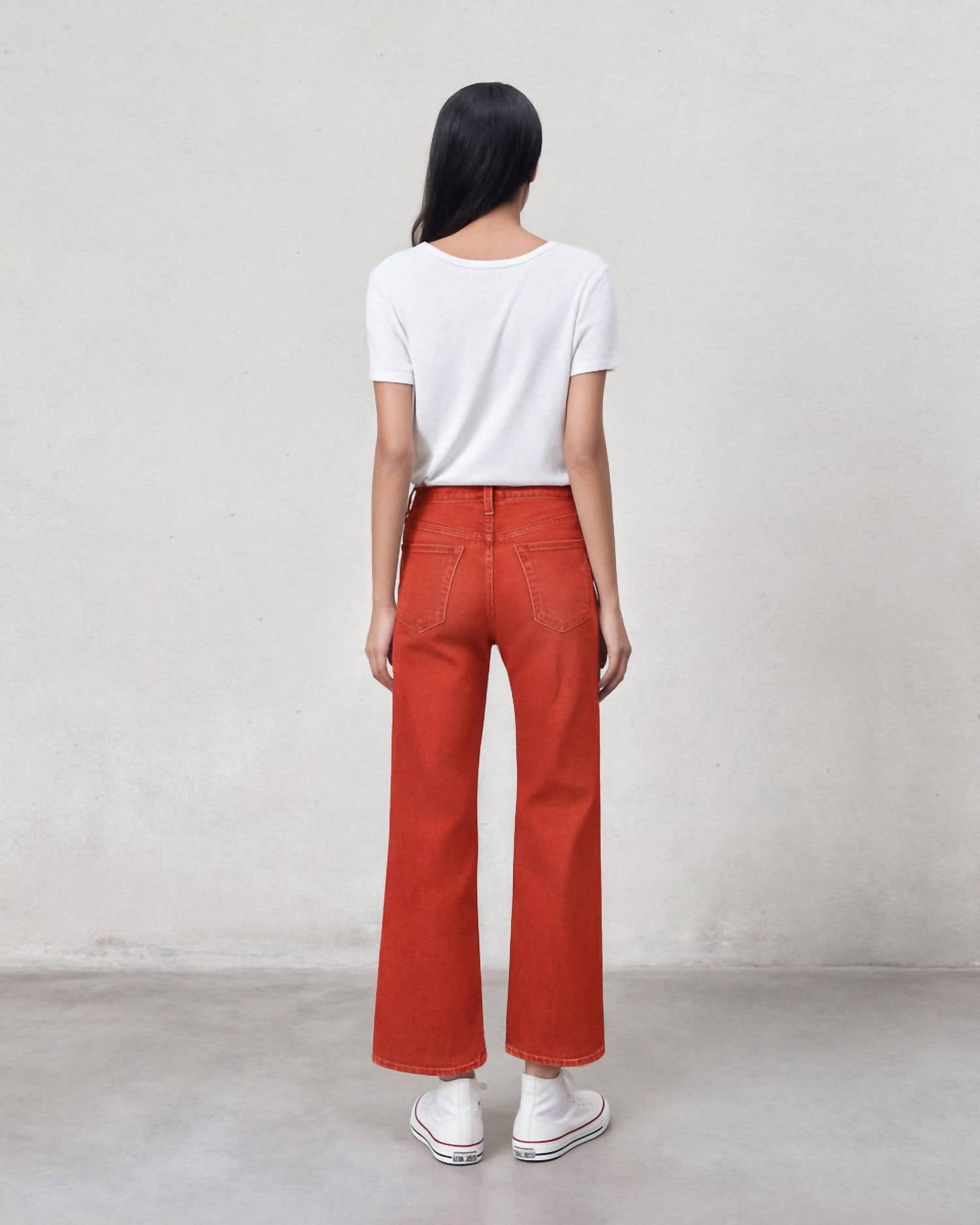 Just as cute as they are comfortable. Discover the Marli Wide Leg Jeans by EDWIN, a high-rise standout in Flame Scarlet that offers both comfort and style. Crafted from a cotton blend with 98% organic cotton and 2% spandex, these jeans feature a relaxed fit, wide leg design, and a button closure. The silhouette is accentuated by a 10.25" rise, 26" inseam, and 17.75" leg opening, perfect for a casual streetwear or high-fashion look that sits just above the ankle. Care for them easily with machine wash instructions.